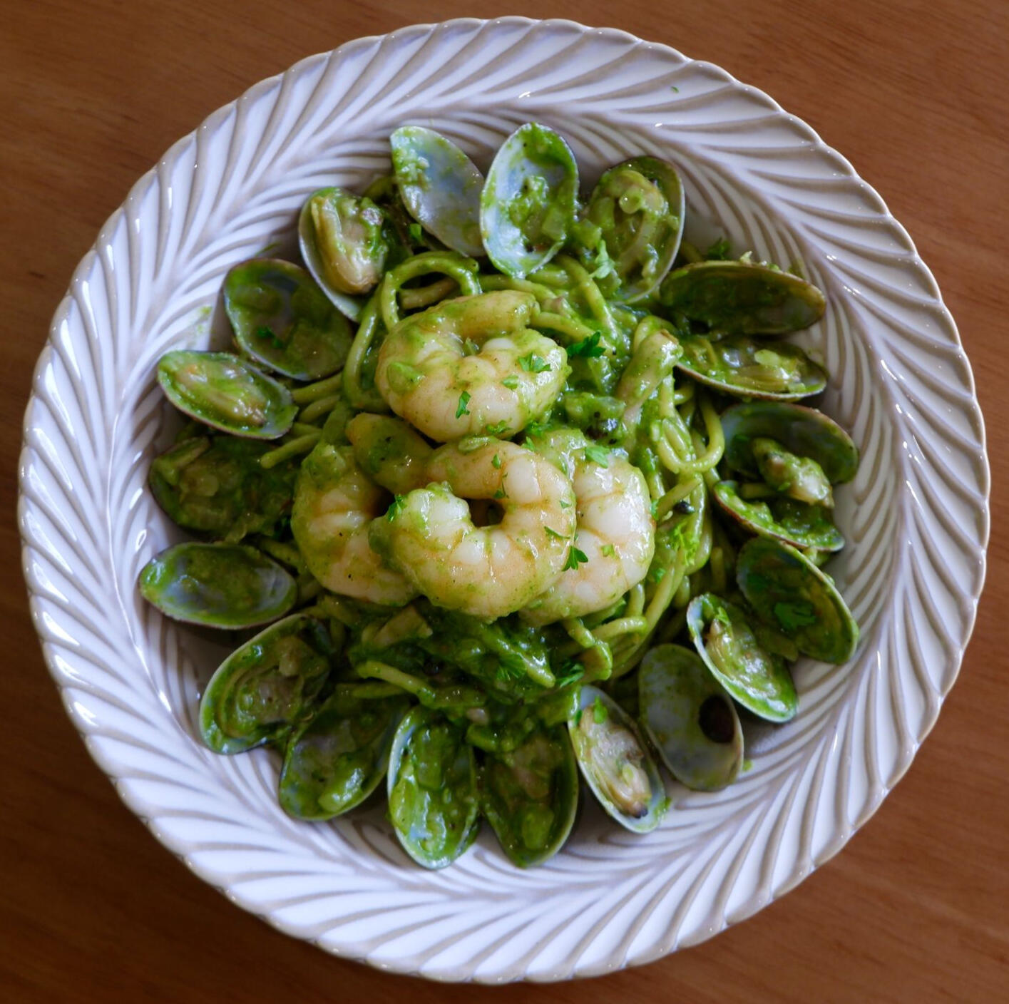 pesto w prawns & clams