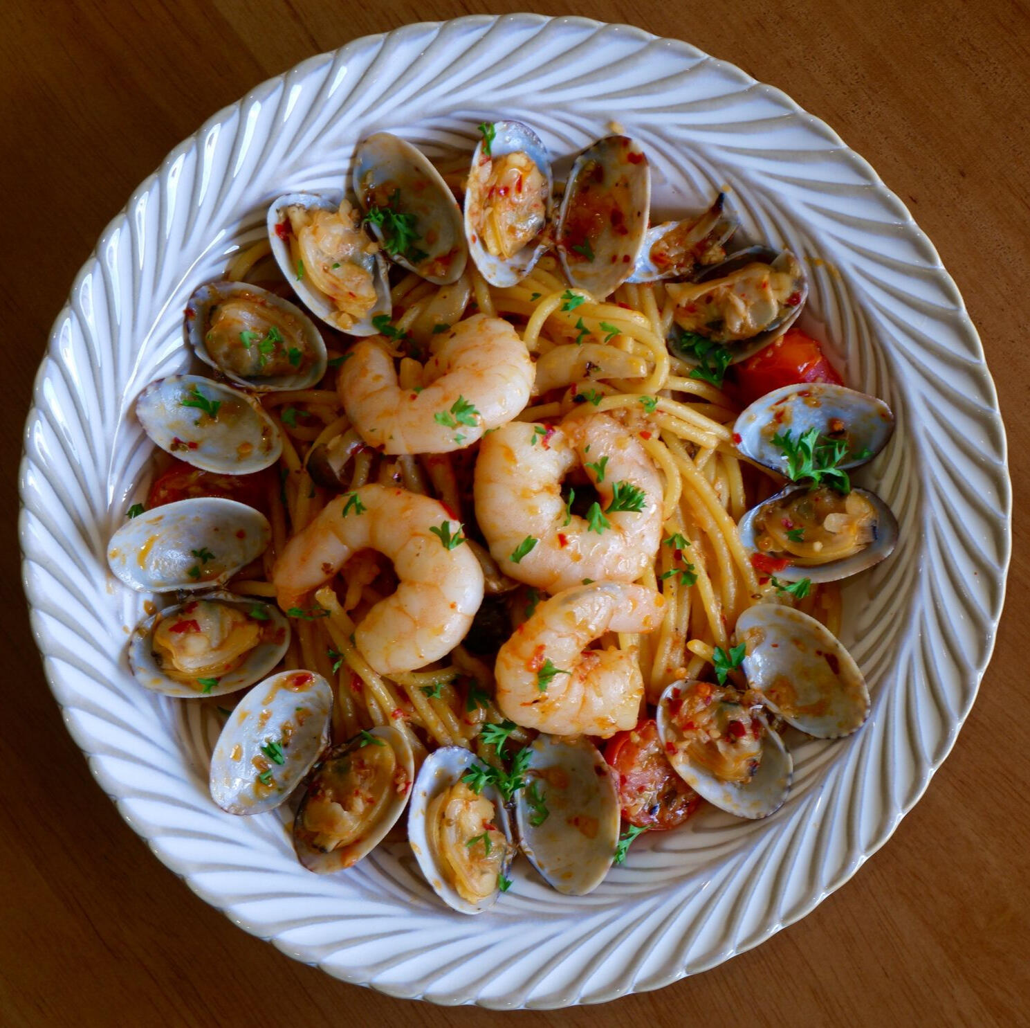 aglio olio w prawns & clams